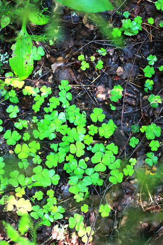 Background from plant clover four leaf. Irish traditional symbol. St.Patrick 's Day.