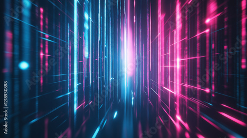 Background, futuristic digital signals in neon blue and pink tones, luminous mesh structure