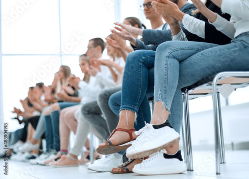 background image of young people applauding in the conference room