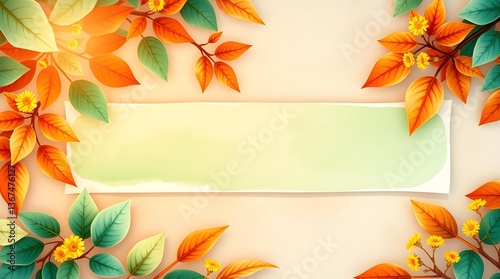Background image showcasing autumn leaves encircling a blank banner