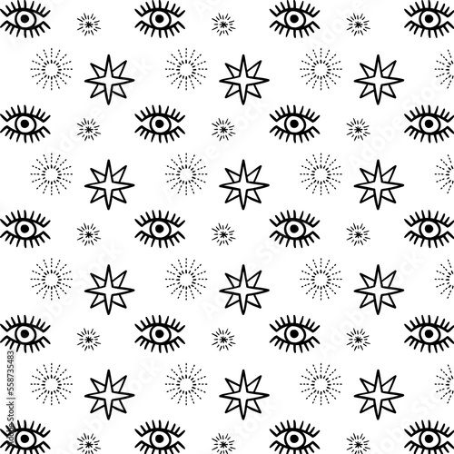 Background in esoteric style with an eye and stars.