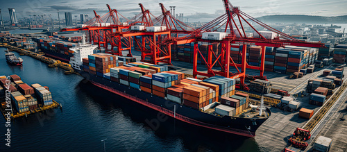 background, logistic, shipping, transportation, cargo, trade, transport, export, import, commerce. the most global shipping operations ship boat cargo container and crane on ocean background.