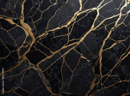 Background of black and grey marble with gold and cracks