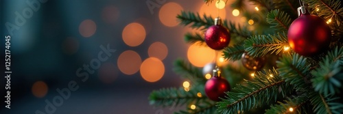 Background of Christmas Tree with Sparkling Lights, bokeh, decorations