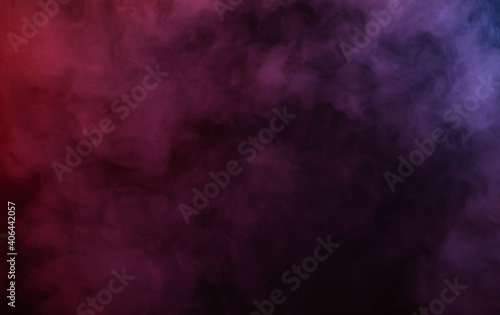 Background of dense smoke in red-blue neon light