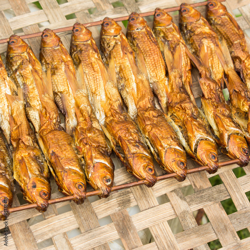 background of golden smoke-dried fish