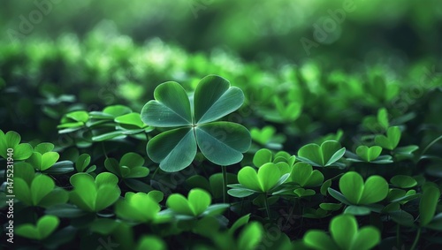 Background of green with three-leafed clovers, Lucky Clover in the field as a symbol of celebration.