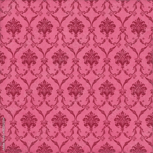 Background paper or fabric, with floral damask and baroque, seamless ornamental pattern