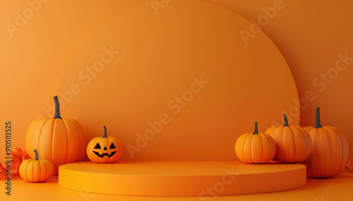 Background podium sale 3D Halloween banner orange autumn ghost. Sale product background podium poster stage platform
