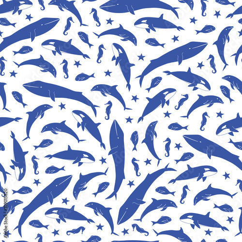 Background sea animals. Background set blue ocean or sea animals. Background marine mammals and fish sea animals. Background vector set of marine or sea animals.