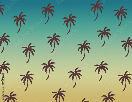 Background. Summer. Flat monochrome summer pattern. Wrapping paper summer pattern. Cute doodle summer pattern with palm tree and waves.