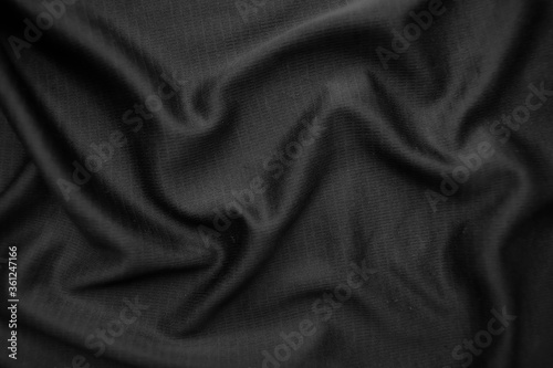 Background texture black cloth. Abstract dark wavy soft. Fabric is wrinkled. Fashion luxury style.