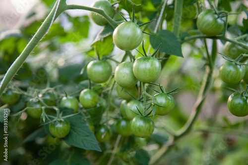 Background texture small cherry tomatoes in greenhouse