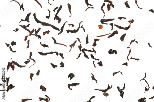 Background with black loose dry indian tea from Darjeling, India. Close-up macro high resolution background..