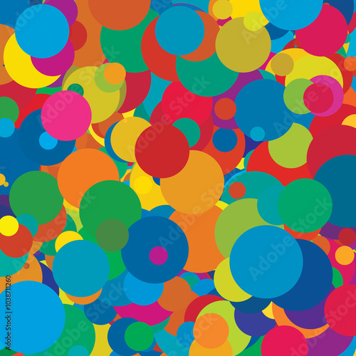 background with circles of various sizes and vibrant colors including red blue yellow orange and green
