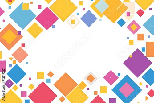 Background with colorful geometric shapes and empty space for text, vector illustration design. Abstract color blocks pattern in yellow, pink, purple, and orange tones on a white background.