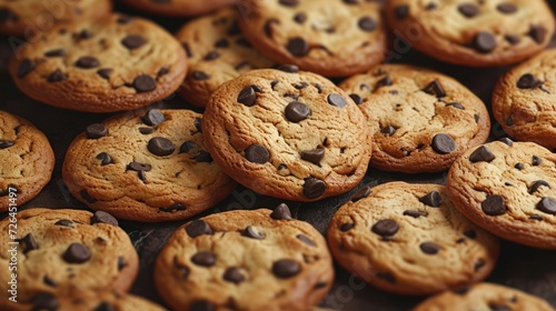 Background with freshly baked tasty chocolate chip cookies, food pattern