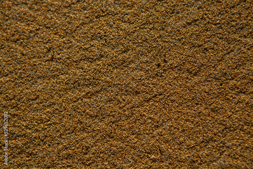 Background with golden sand on the coast of the island of Crete. Abstract surface with sand and clear sea water for text.