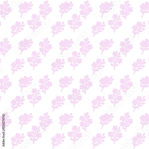 Background with pink silhouette of cherry blossom branch with two flowers, several buds and leaves