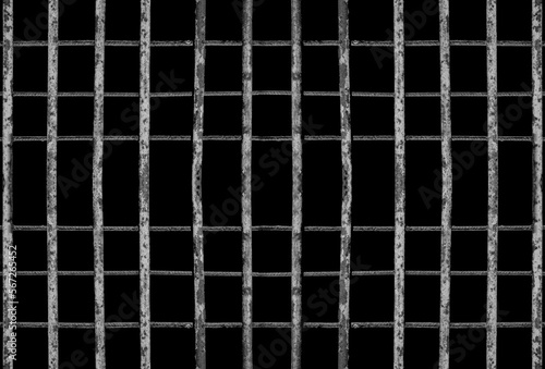 Background with rusty grid. Construction and industrial theme. isolated on black background. Iron grid lattice texture backdrop. rusty metal pattern with square holes. metal lattice window