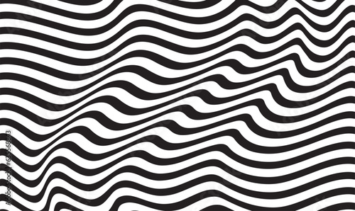 Background with wavy lines. Twisted duo tone backgrounds. Abstract pattern from lines, halftone effect. Black and white texture. Minimalist design template for poster, banner, cover, postcard.