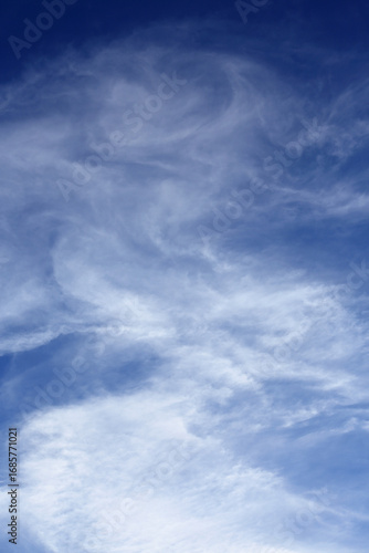 Backgrounds. Cloudscape. Deep blue sky with beautiful cirrus and cirrostratus clouds. Portugal.