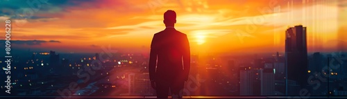Backlit investor silhouette with a golden glow at sunrise, sharp contrast against a vibrant colored sky
