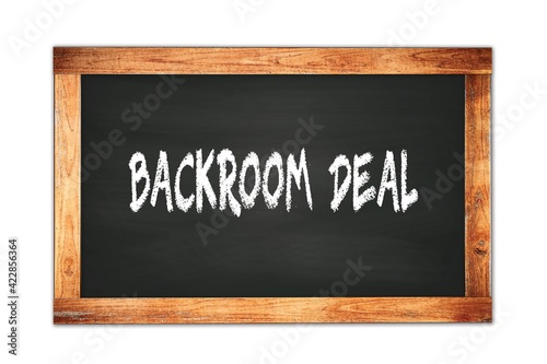 BACKROOM DEAL text written on wooden frame school blackboard.