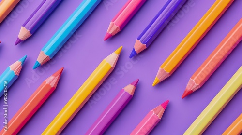 Back-to-School pencils Supplies in Rainbow Colors. Colorful Stationery Arrangement