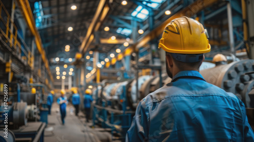 Backview Portrait of Diverse Industrial Workers Operating in a Factory