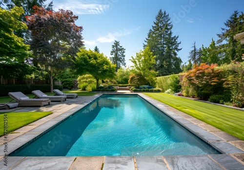 Backyard Pool with Lounge Chairs and Lush Greenery