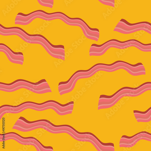 Bacon roasted seamless pattern. Thin piece of meat background. Pork texture. Food Ornament