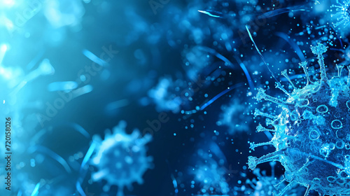 Bacteria virus with rich surface details on blue background, technology medical concept illustration 3D rendering