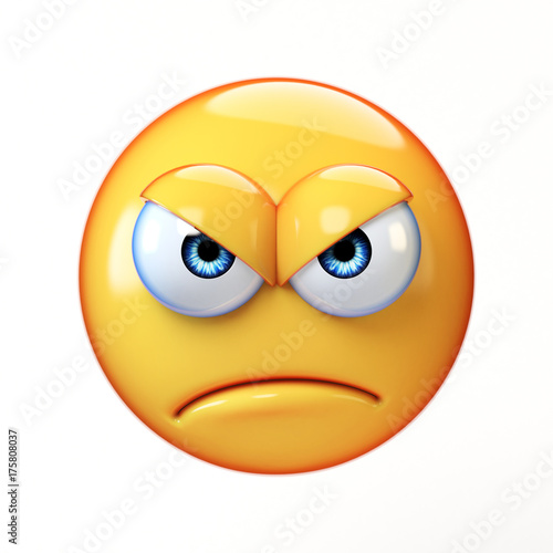 Bad emoji isolated on white background, upset emoticon 3d rendering