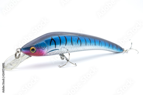 Bait for fishing wobbler with hooks on a white background