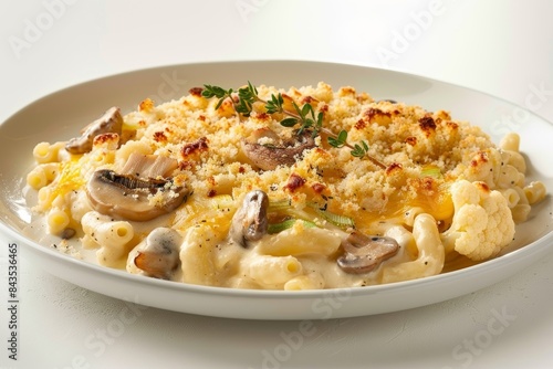 Baked Cauliflower Macaroni and Cheese with Leeks and Mushrooms - Golden Brown Topping