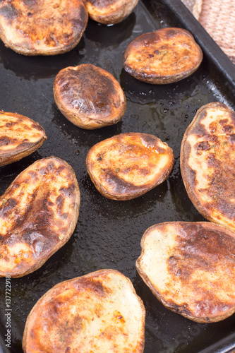 Baked potatoes in the oven with shell