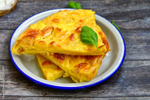 Bakery .Home made cheese pie with phyllo pastry and organic eggs. Bulgarian banitsa