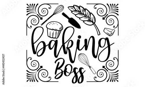 Baking boss- Baking t shirts design, Hand drawn lettering phrase, Calligraphy t shirt design, Isolated on white background, svg Files for Cutting Cricut and Silhouette, EPS 10