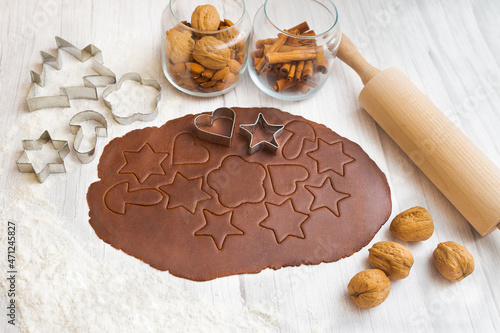 Baking Christmas gingerbread. Preparing homemade gingerbread for the holidays.