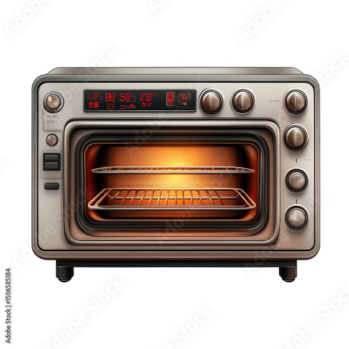 Baking magic happens within this stainless steel toaster oven preparing on transparent background