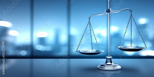 Balance scales against blurred office background