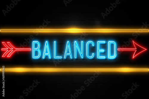Balanced - fluorescent Neon Sign on brickwall Front view