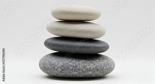 Balanced Stone Stack Featuring Gray and White Pebbles on a Neutral Background in Studio Lighting