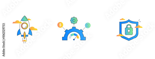 Balancing Innovation with Security and Cost Efficiency. Icons Included: Innovation and Launch, Security & Protection, Performance and Cost Efficiency
