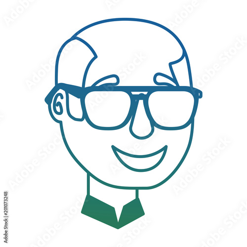 bald man character face with sunglasses vector illustration degraded color