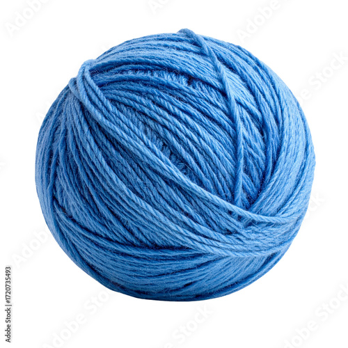 Ball of blue wool yarn isolated on white background.