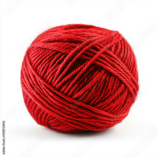 Ball of red yarn soft crafting material isolated on white background