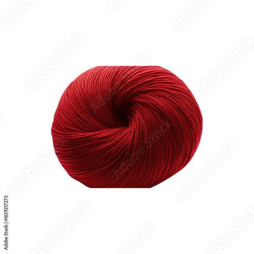Ball of Soft Red Woolen Yarn Skein on White Background