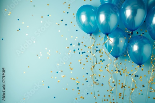 Balloons with confetti. Background template design with helium balloons for Party for Birthday and anniversary celebration, carnival. weddings and valentine's day and international women's day
